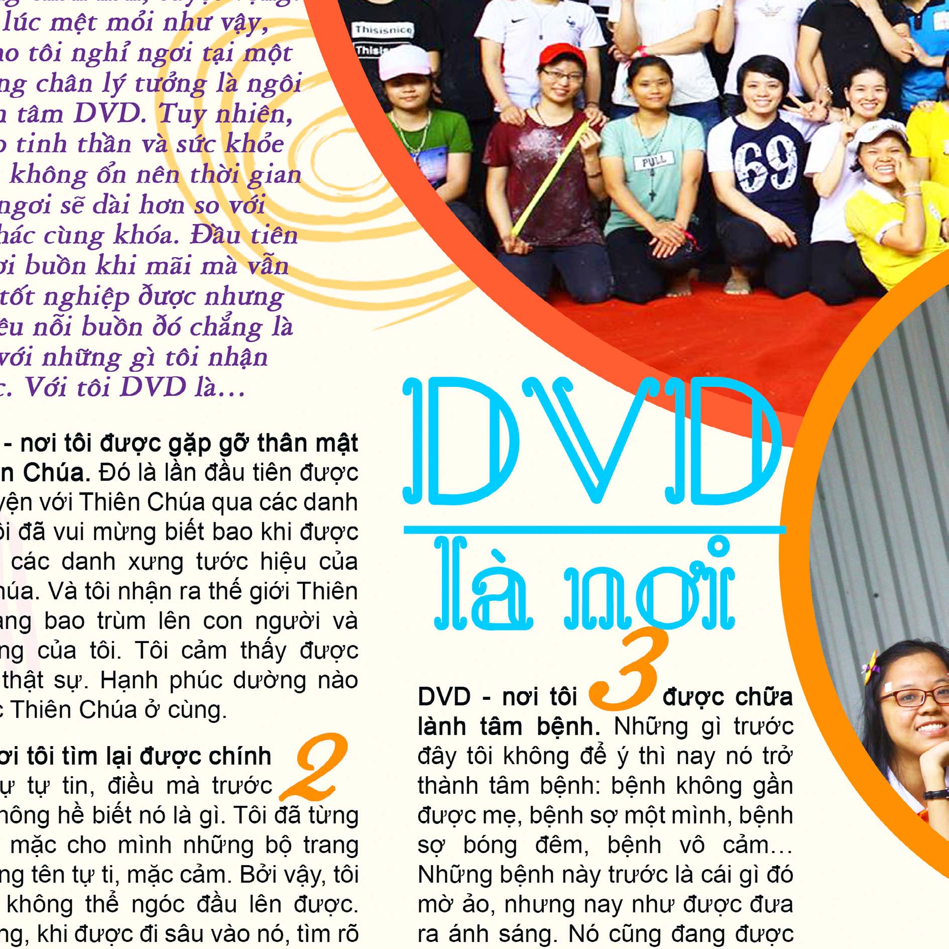 Khi đứng trước khó khăn để chọn cho mình một lối đi cho tương lai, tôi đã phải suy nghĩ, trăn trở rất nhiều, và rơi vào tình trạng chán nản, tuyệt vọng. Đang lúc mệt mỏi như vậy, Chúa cho tôi nghỉ ngơi tại một điểm dừng chân lí tưởng là ngôi nhà tĩnh tâm DVD. Tuy nhiên, vì lí do sức khỏe, tinh thần, tâm linh không ổn...